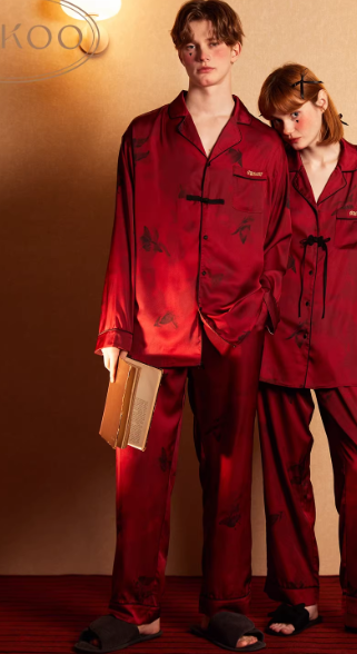 Gukoo/果壳睡衣结婚新婚情侣套装睡衣春秋款红色睡衣冰丝男款家居服C