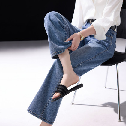德玛纳【越简单越时髦】春秋阳光棉街拍风斜袋直筒裤装饰挖袋女式牛仔裤G540322142602
