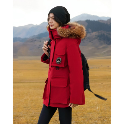 德玛纳【双旦三防系列】冬季90鹅绒可脱卸连帽毛领工装中长女式羽绒服G540421130015