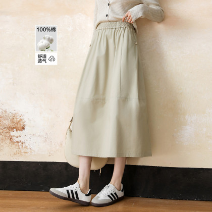 德玛纳【100棉】春季韩风松紧腰纽扣装饰口袋A字小个子女式半身裙G541121336409