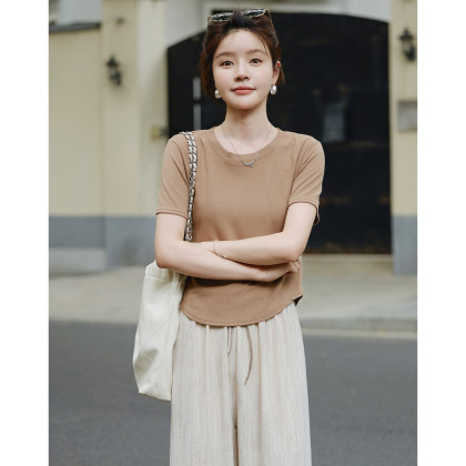 【实穿至上】夏季日常简约风圆领短袖打底衫弧形下摆舒弹女式t恤